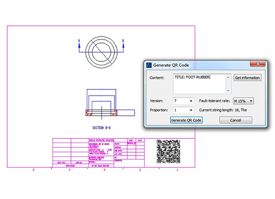 Convertir información en códigos de barra o QR e incrustarlos en el dibujo.